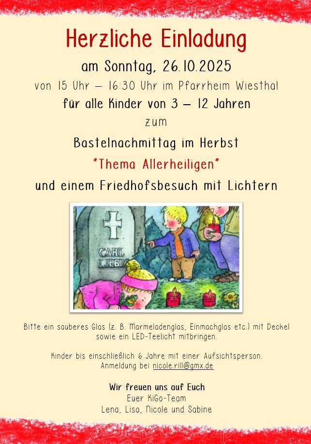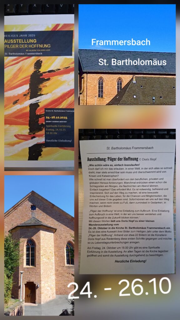AUSSTELLUNG in der Kirche St. Bartholomäus Frammersbach Vom 24. – 26.10.2025 findet in der Kirche St. Bartholomäus Frammersbach eine Ausstellung mit Bildern von Doris Hopf statt. Am Freitag, den 24.10.25 [...]