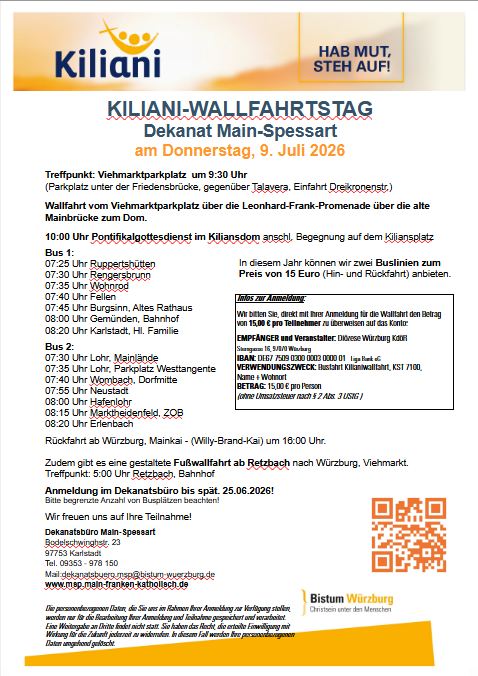 Kiliani-Wallfahrtstag Dekanat Main-Spessart am 9. Juli 2026